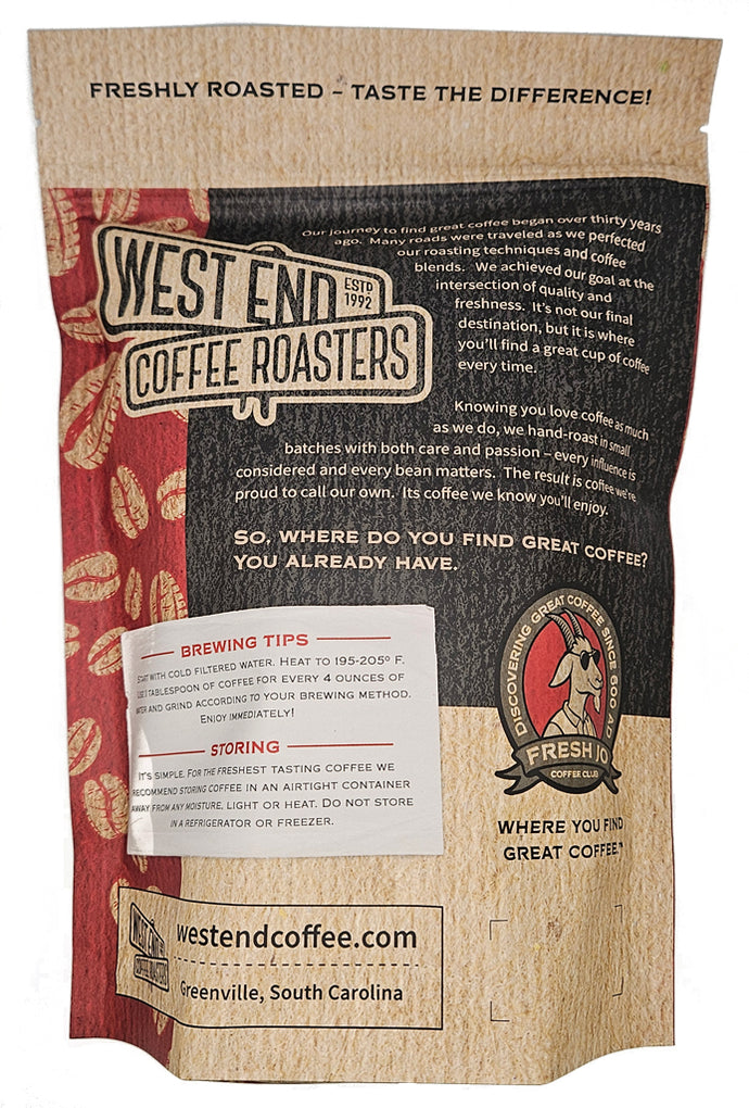Founded in 1992, West End Coffee Roasters is one of the oldest and largest specialty coffee roasters in the Carolinas. We offer a wide variety of coffee and are trusted by thousands of customers to deliver the best coffee products and customer service to homes, restaurants, businesses, grocery stores, and places of worship.